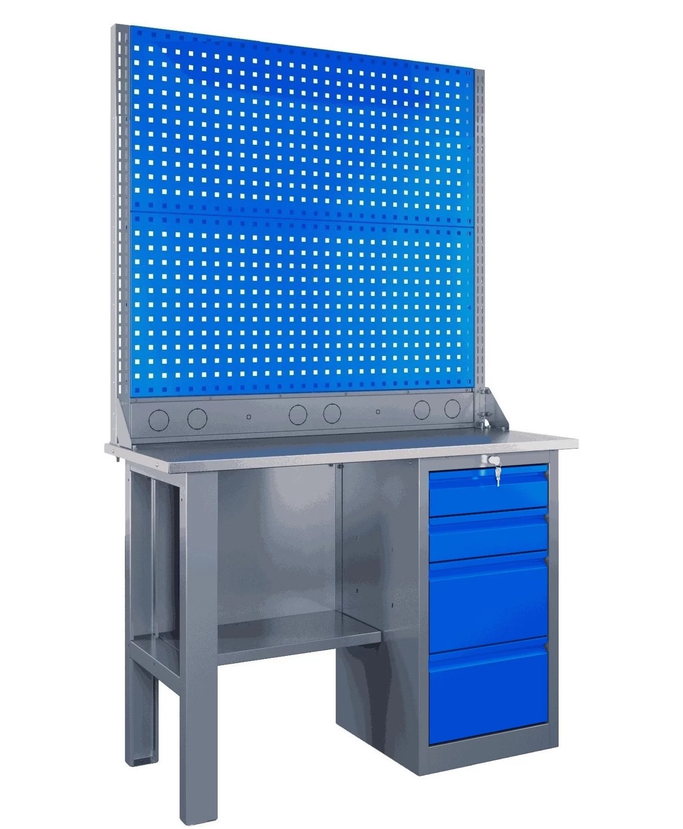 - Элегантное сочетание пыльно-серого и небесно-синего цветов придаёт верстаку привлекательный вид – это весьма существенно при установке в домашней мастерской или учебном заведении.