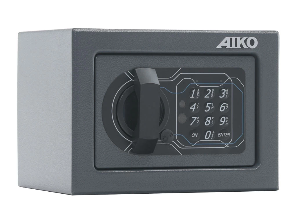Модель Aiko T-140 EL представляет собою прочное сварное изделие из стальных листов толщиной 1.2 мм; дверь усилена за счёт лицевой панели в 2.8 мм. Запирается отечественным электронным замком PLS-3, к которому прилагается мастер-ключ для аварийного открывания. Замок кодируется сочетаниями из четырёх-шести цифр. Если батарейки будут разряжены, на введённый код это не повлияет.